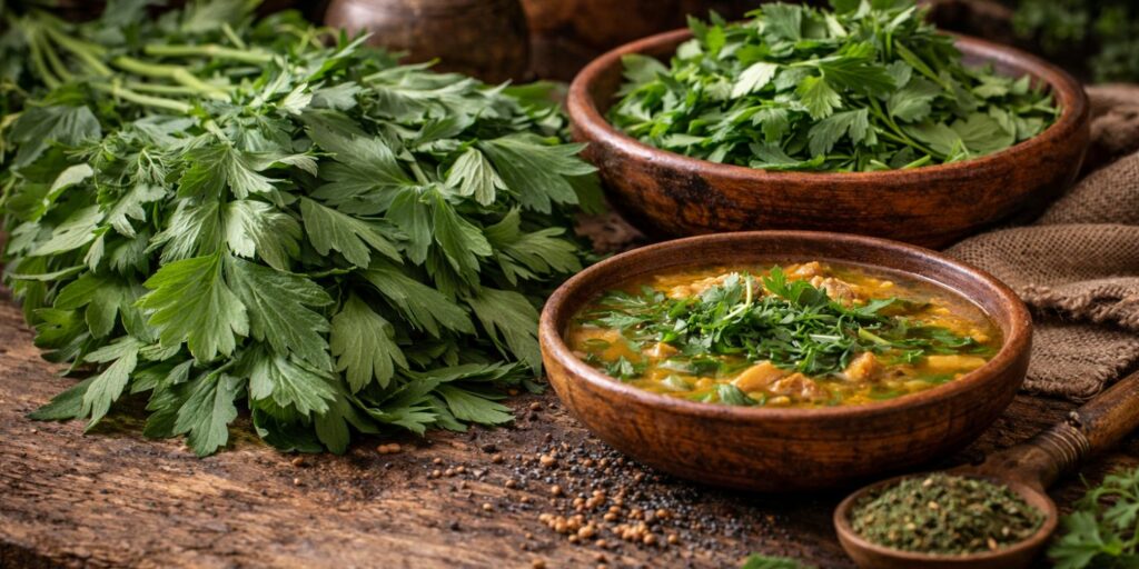 Les feuilles et les tiges étaient intégrées aux recettes mijotées. Elles diffusaient progressivement leur parfum pendant la cuisson. Cette plante permettait d’enrichir des soupes ou des ragoûts. La livèche agissait comme un exhausteur naturel de goût. Elle améliorait des plats simples.