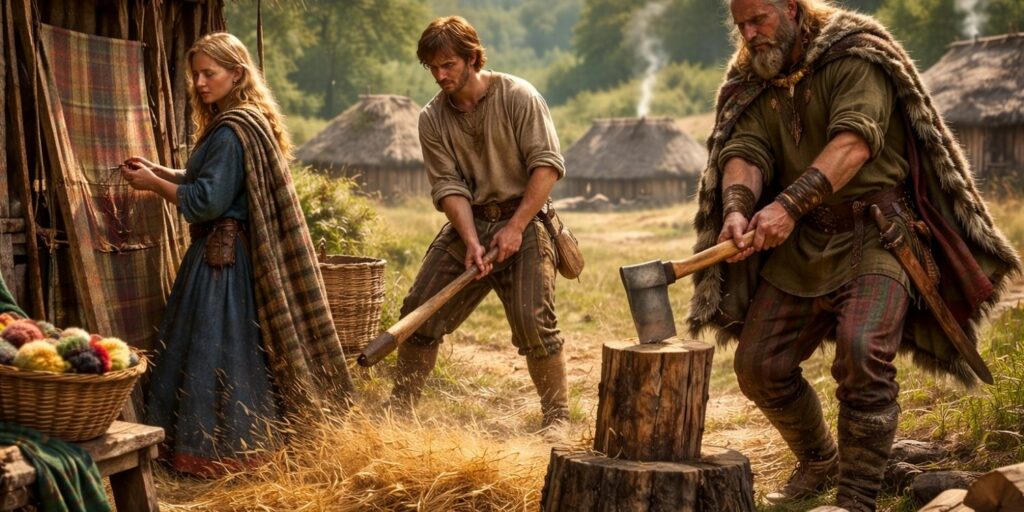 Les artisans textiles jouaient un rôle important dans la fabrication des vêtements. Le filage et le tissage étaient souvent réalisés à la maison, notamment par les femmes. Les métiers à tisser permettaient de produire des étoffes variées selon les besoins. Ainsi, les Gaulois disposaient de vêtements adaptés aux saisons et aux activités.