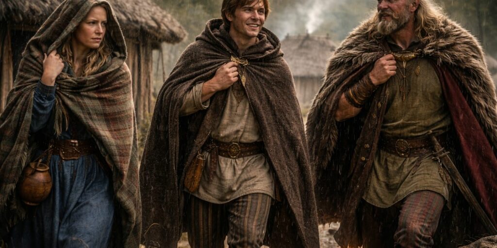 Les étoffes utilisées pouvaient être lourdes et robustes. Elles protégeaient non seulement du froid, mais aussi de la pluie ou du vent. Les Gaulois privilégiaient des matériaux capables de durer longtemps. Les manteaux représentaient donc un investissement utile.