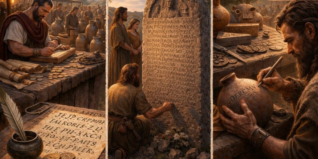 Les marchands gaulois utilisaient l’écriture pour identifier des biens ou des lots. Cela permettait d’éviter les malentendus lors des échanges. L’écrit devenait alors un outil pratique, non symbolique.
