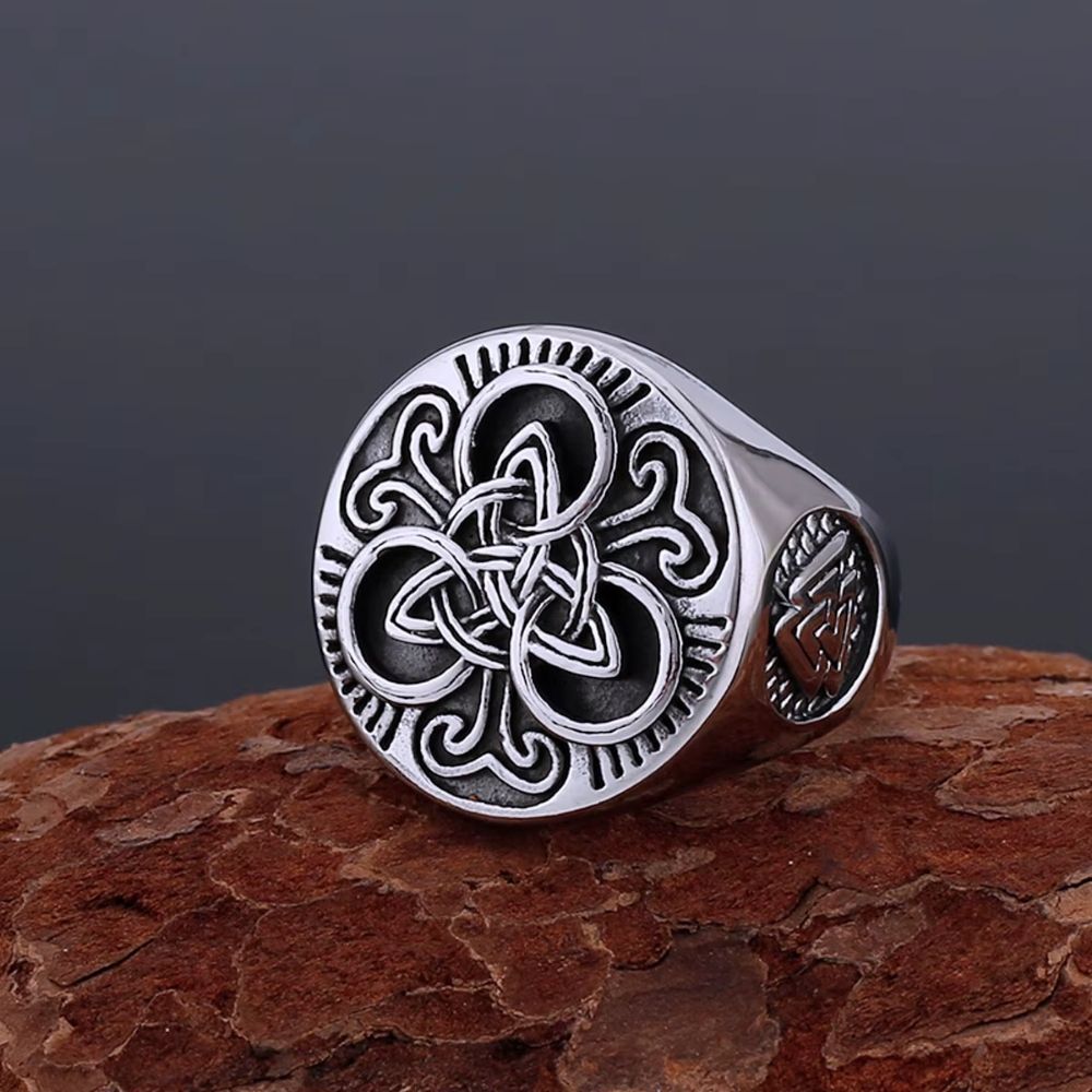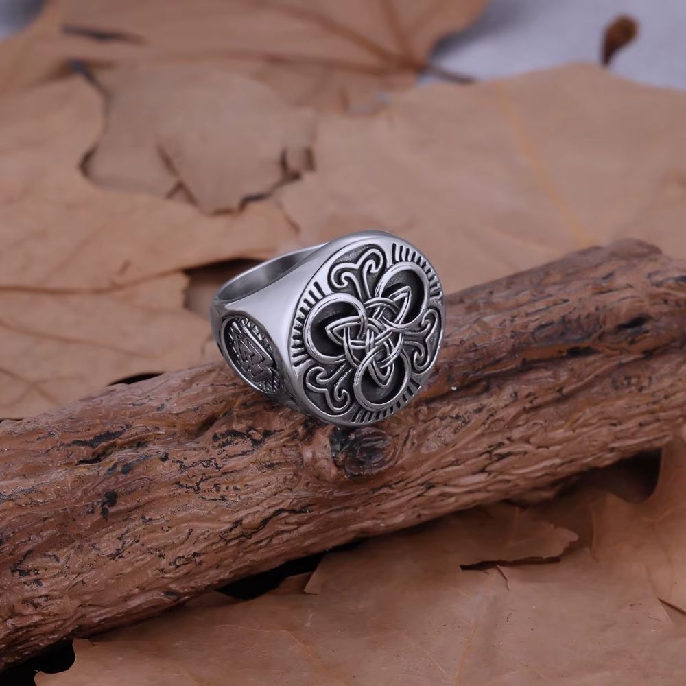 Les motifs entrelacés sont gravés avec précision, créant un effet de relief qui capte naturellement la lumière. Chaque courbe s’intègre dans une composition cohérente. Les détails restent lisibles même à distance. Cela renforce l’identité visuelle de la bague.