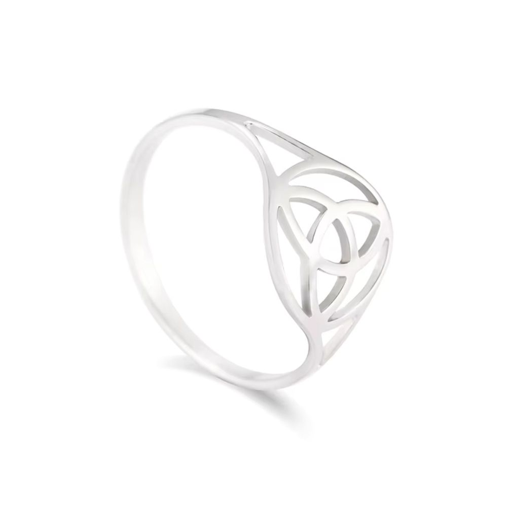 Cette bague gauloise propose une interprétation moderne du triquetra avec une structure ouverte et épurée en finition argentée. Les lignes fines créent un effet aérien qui contraste avec la symbolique forte du motif. L’ensemble offre une esthétique légère mais structurée. Elle se distingue par sa simplicité visuelle maîtrisée.
