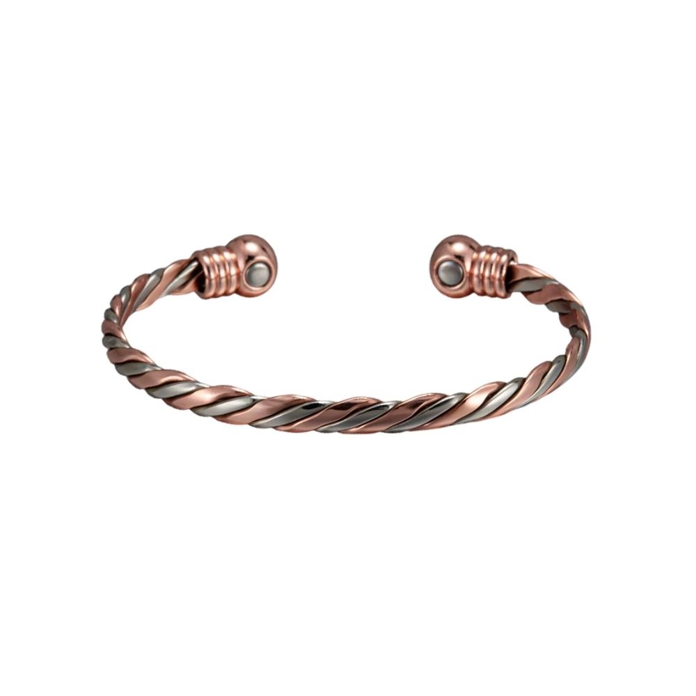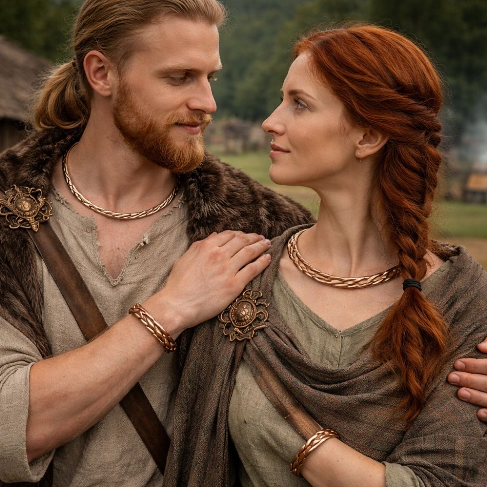Ce bracelet torque gaulois torsadé bicolore ouvert présente une structure tressée combinant deux teintes métalliques qui créent un contraste visuel tout en conservant une forme circulaire stable et équilibrée. La ligne reste dynamique. Le métal capte la lumière. L’ensemble évoque une parure gauloise revisitée, combinant contraste, texture et présence visuelle sans surcharge décorative excessive.