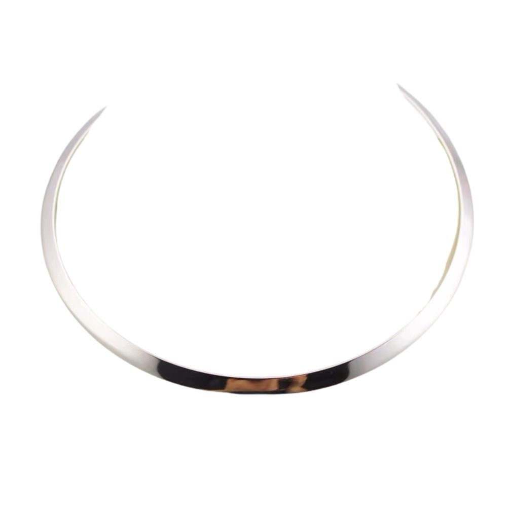 Ce torque gaulois argent poli se caractérise par une forme ouverte rigide et épurée qui entoure le cou tout en conservant une grande simplicité visuelle fidèle aux représentations historiques. Sa structure lisse reflète la lumière de manière uniforme. Le métal reste homogène. L’ensemble évoque un bijou inspiré des traditions gauloises, à la fois sobre, symbolique et marqué par une présence forte sans surcharge décorative.