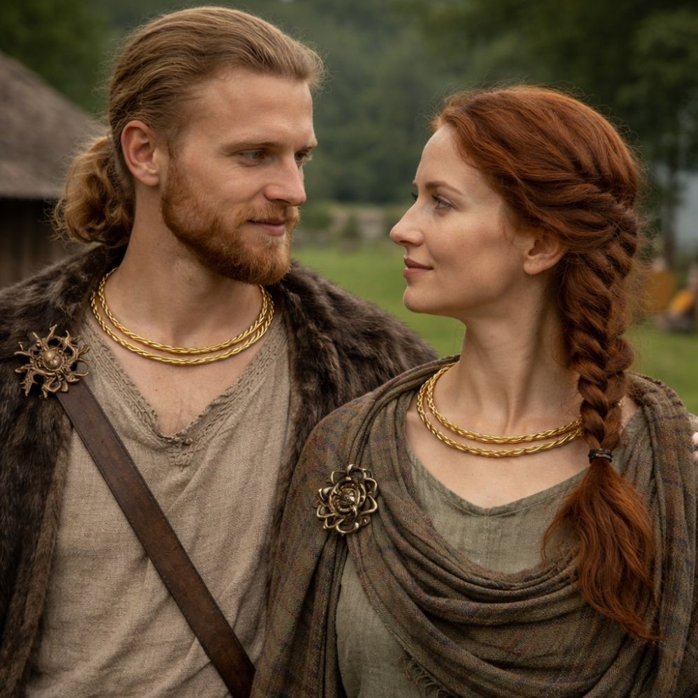 Ce torque gaulois double torsadé doré ouvert présente une structure composée de deux lignes entrelacées qui forment une texture régulière tout en conservant une forme circulaire souple et cohérente. La courbure reste fluide. Le métal capte la lumière. L’ensemble évoque une parure inspirée des traditions gauloises, combinant relief discret, structure double et présence visuelle équilibrée sans surcharge décorative.