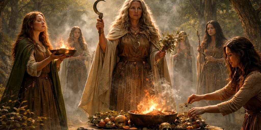 Elles accompagnaient les naissances, les guérisons, les passages de vie. Parfois isolées dans des bois sacrés ou vivant en communauté, elles formaient un cercle à part, respecté mais aussi craint.