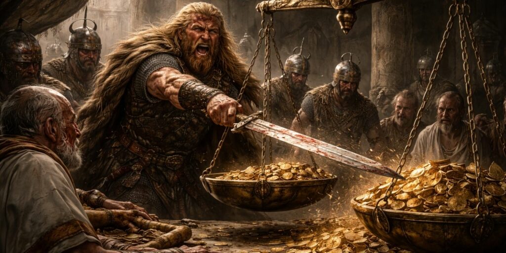 Le paiement se fait sous tension. Les Romains se sentent humiliés, mais n’ont pas d’autre choix. La survie de la ville est en jeu.